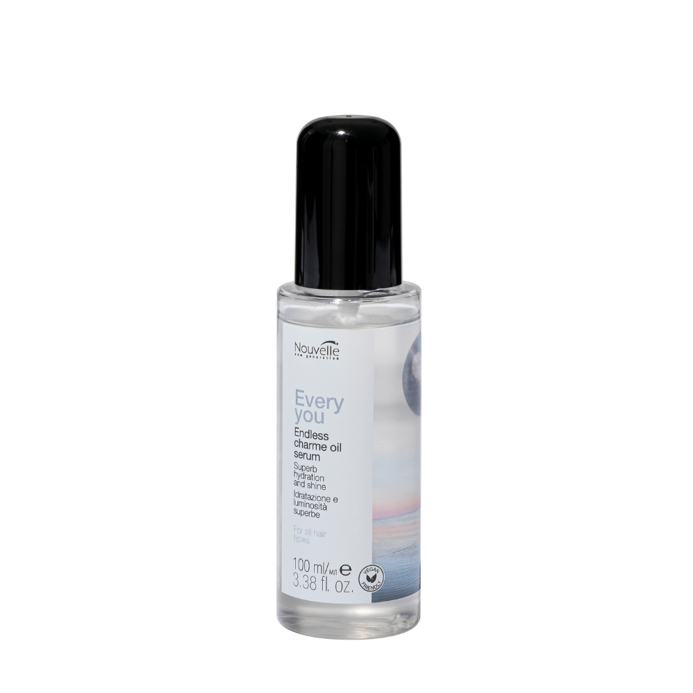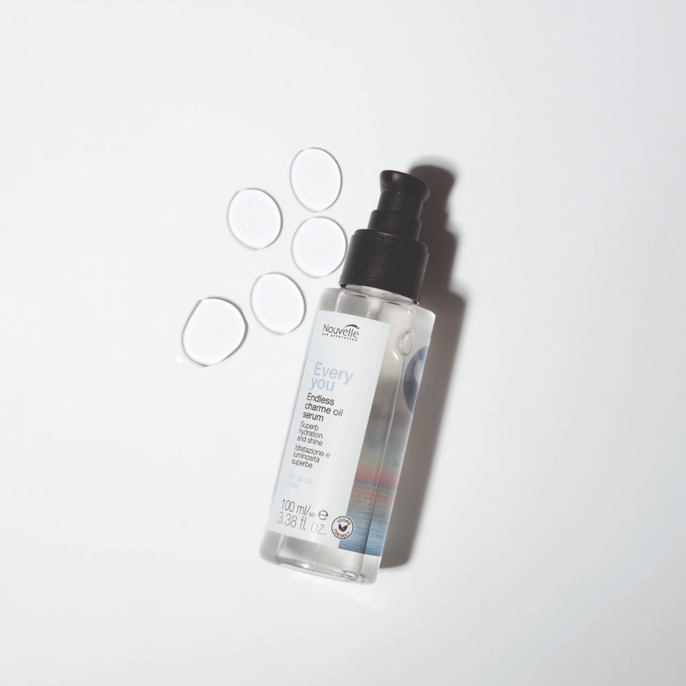 „Nouvelle Every You Endless Charme Oil Serum“ – tai prabangus nenuplaunamas drėkinantis plaukų serumas, kuris akimirksniu suglotnina plaukus, panaikina jų šiurkštumą ir suteikia veidrodinį blizgesį.
