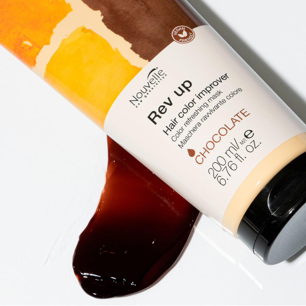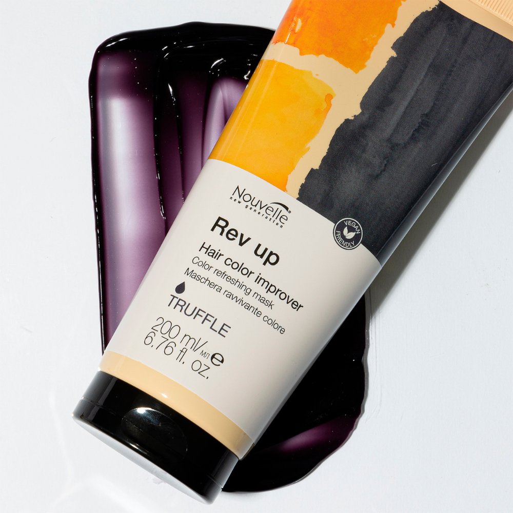 Nouvelle Rev Up – tai daugiafunkcinė drėkinanti ir dažanti kaukė, kuri vienu žingsniu atgaivina spalvą, suteikia intensyvų drėkinimą ir restruktūrizuoja plaukus.
