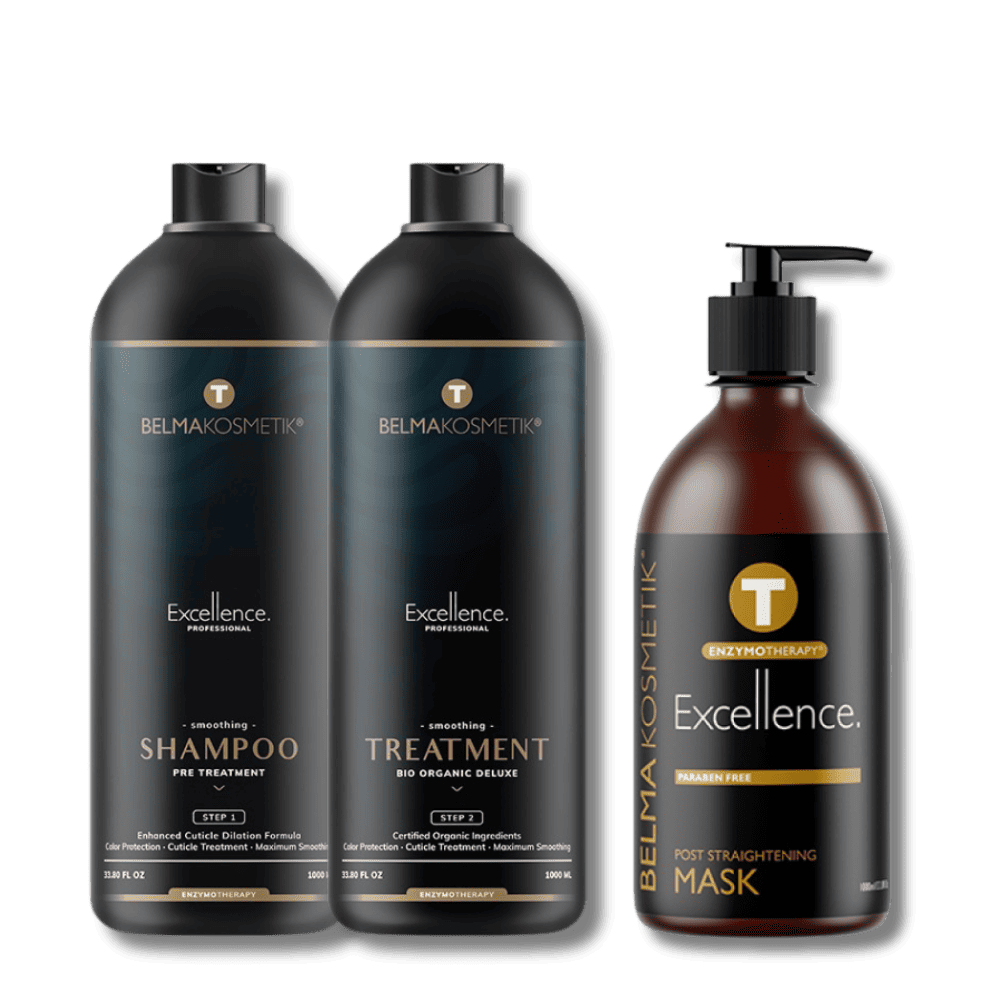 | Kiekis | Excellence – Pre Treatment Smoothing Shampoo (Step 1) 1000ml., Excellence – Bio Organic Deluxe Treatment (Step 2) 1000ml., Excellence – Perfect Bond (Step 3) 1000ml. |