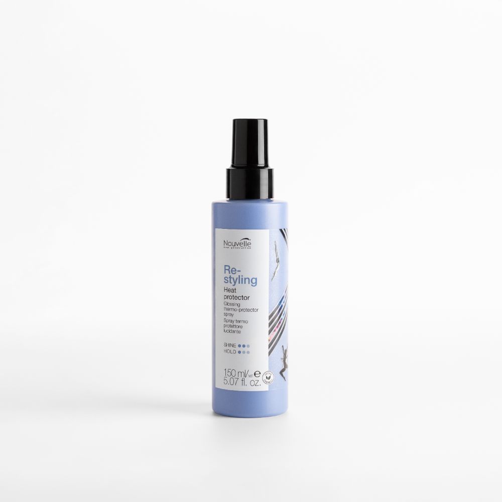 „Nouvelle Re-Styling Heat Protector“ – tai nepakeičiama profesionali apsauga nuo karščio plaukams, užtikrinanti saugumą formuojant šukuoseną džiovintuvu, tiesintuvu ar žnyplėmis.