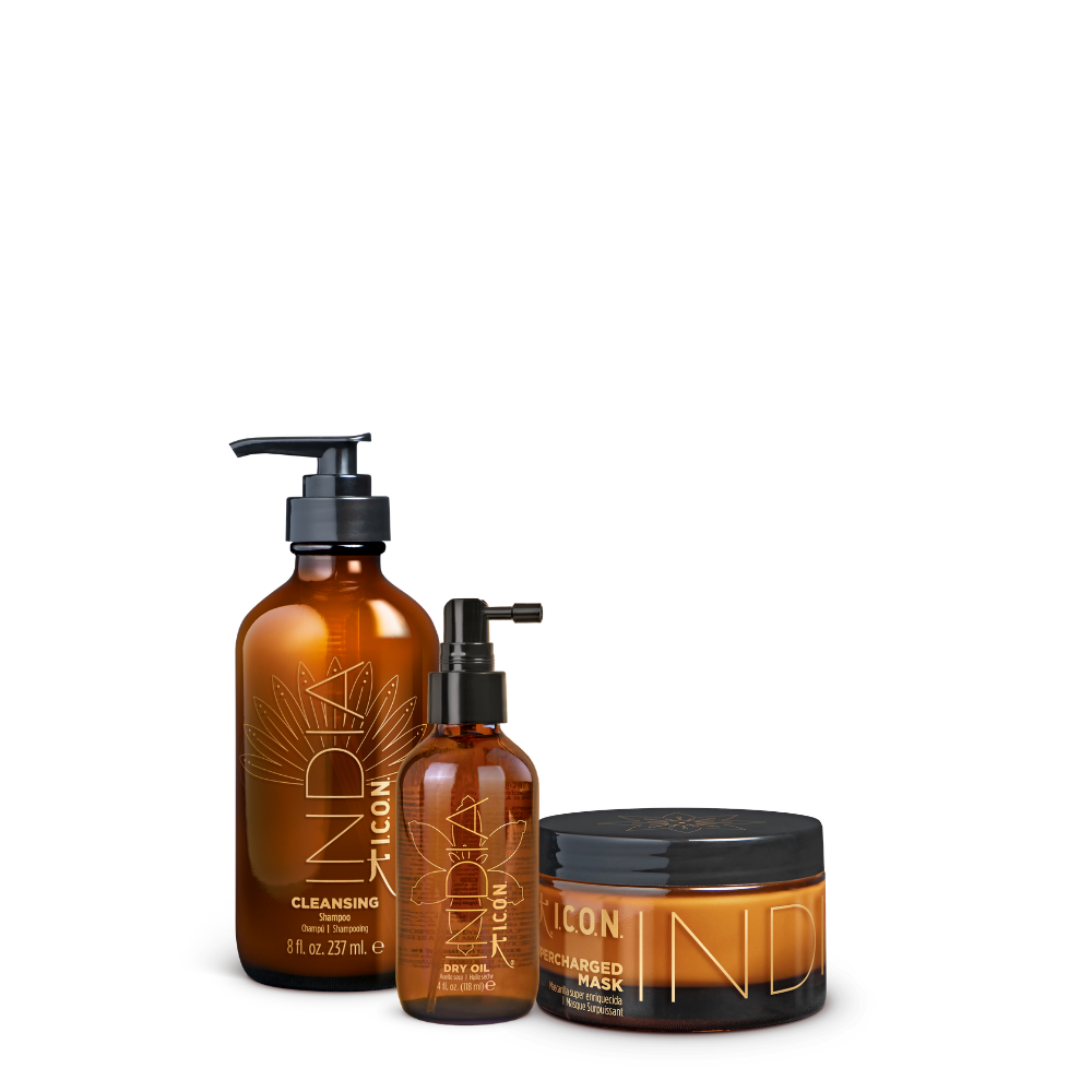 I.C.O.N. INDIA linija – tai prabangus trijų žingsnių ritualas, įkvėptas ajurvedos filosofijos ir modernios plaukų atkūrimo technologijos.