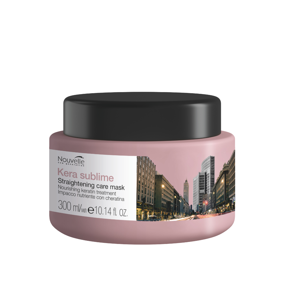 „Nouvelle Kera Sublime Straightening Care Mask“ – tai intensyvaus poveikio maitinamoji kaukė su keratinu, sukurta plaukų glotnumui, ypatingam švelnumui ir struktūros stiprinimui užtikrinti.