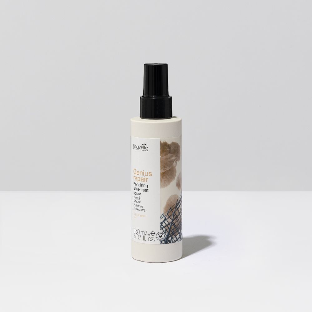 Nouvelle Genius Repair Ultra-Treat Spray – tai profesionali priemonė, skirta itin pažeistų plaukų struktūros atkūrimui. Šis plaukų atstatymo purškiklis veikia kaip jungčių daugintojas (bond multiplier), kuris molekuliniu lygmeniu neutralizuoja cheminių procedūrų padarytą žalą. Purškiklis akimirksniu grąžina plaukams gyvybingumą, tvirtumą ir sveiką išvaizdą.